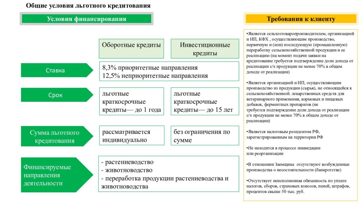 * Размер льготной ставки определяется с учетом направления целевого использования льготного краткосрочного кредита и (или) льготного инвестиционного кредита и статуса заемщика.