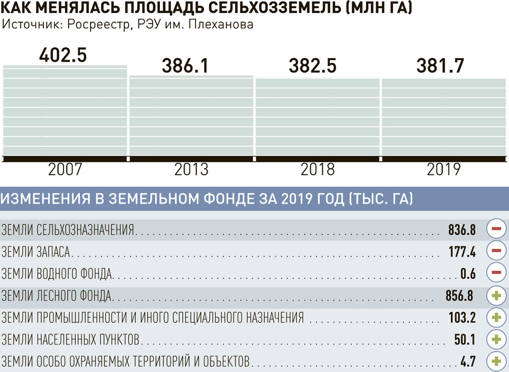 Минсельхоз внес в правительство обновленную госпрограмму по вовлечению в оборот неиспользуемых сельхозземель. Сейчас их около 44 млн га. Из них за 10 лет планируется ввести в оборот не менее 13 млн. С помощью программы минсельхоз надеется и сохранить имеющиеся сельхозземли. За последние 10 лет их площадь сократилась более чем на 18 млн га - в законодательстве для этого слишком много «дыр».