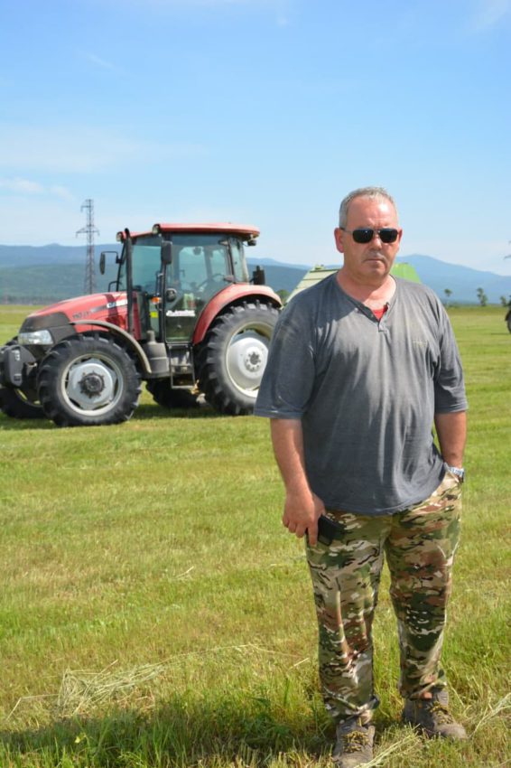– Гектары получили на семью – на меня, на жену, на сына. Первый год сажал картофель, разработал землю. Потом завел мелкий рогатый скот. Получал гранты на сумму 200 тысяч рублей. На эти деньги купил опрыскиватель минеральных удобрений и поставил теплицу. Сейчас мы находимся на поле, где заготавливаем сено для животных, – поделился фермер Андрей Рубанов.