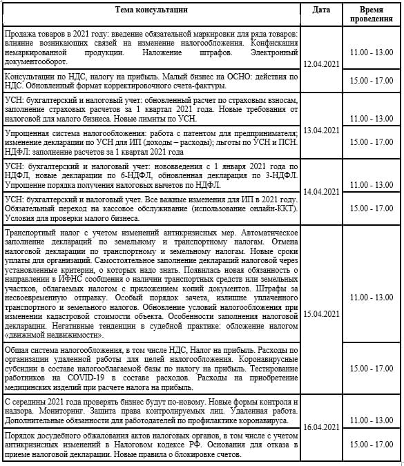 Общественная организация Сахалинский деловой клуб «Налоговый Консультант» совместно с Департаментом экономического развития администрации города Южно-Сахалинска в рамках реализации муниципальной программы «Поддержка и развитие малого и среднего предпринимательства городского округа «Город Южно-Сахалинск» на 2015-2021 годы» в период с 12.04.2021 по 16.04.2021 проведет бесплатные индивидуальные консультации для малого предпринимательства по вопросам бухгалтерского учета и налогообложения.