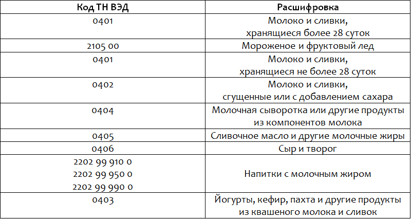 Для вашего удобства мы перечислили ее вместе с кодами ТН ВЭД:
