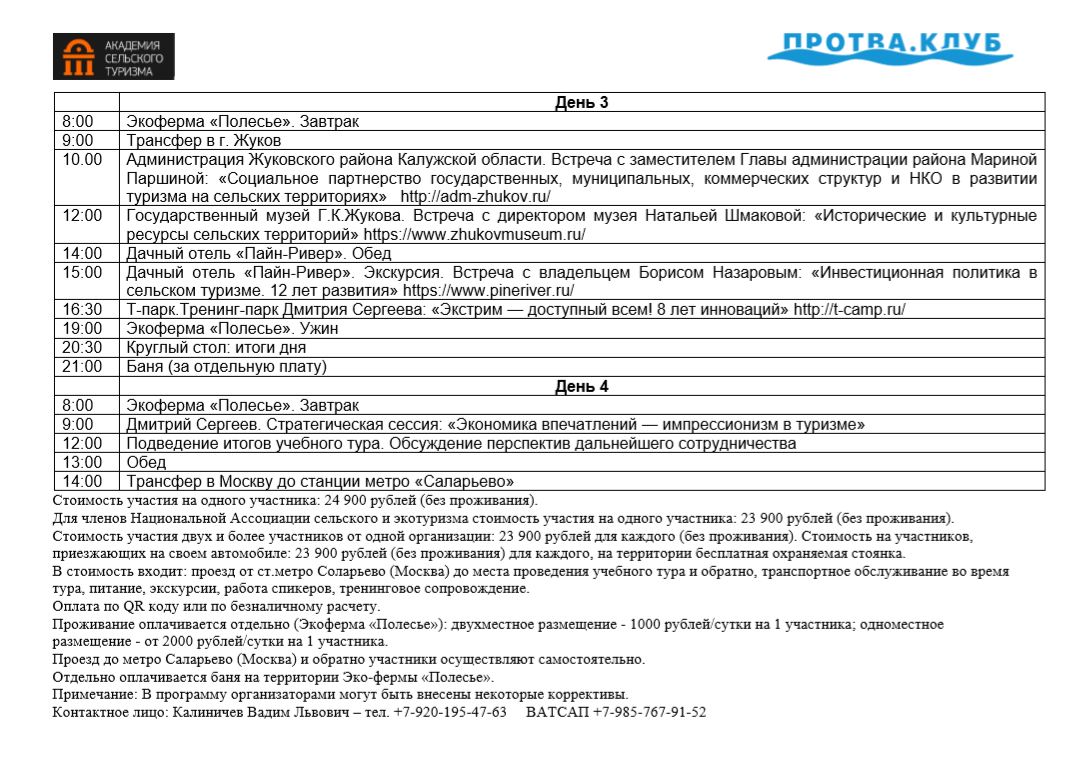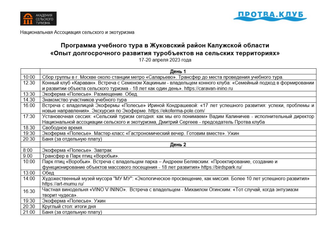 Национальная ассоциация организаций по развитию сельского и экотуризма приглашает принять участие в учебном туре «Опыт долгосрочного развития туробъектов на сельских территориях», который пройдет в Калужской области.