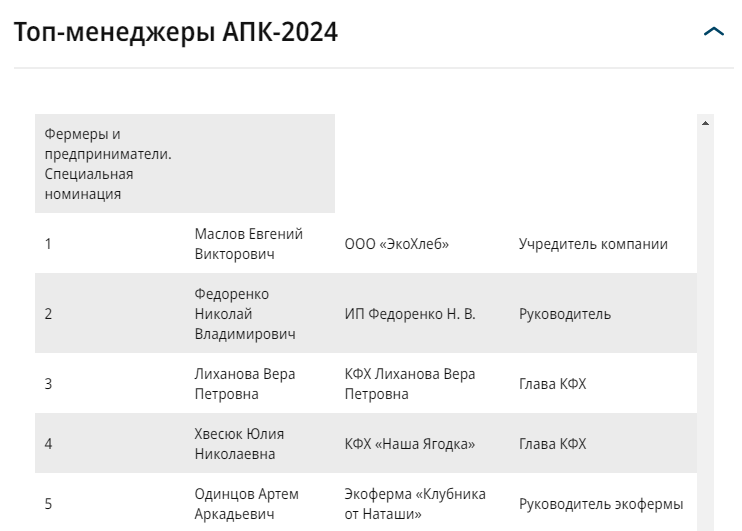 Рейтинг включает в себя восемь основных направлений для руководителей разных блоков: от руководителя предприятия до руководителей подразделений — и четыре специальные номинации для лидеров агрообразования, молодых руководителей АПК, инноваторов научных разработок и фермеров.