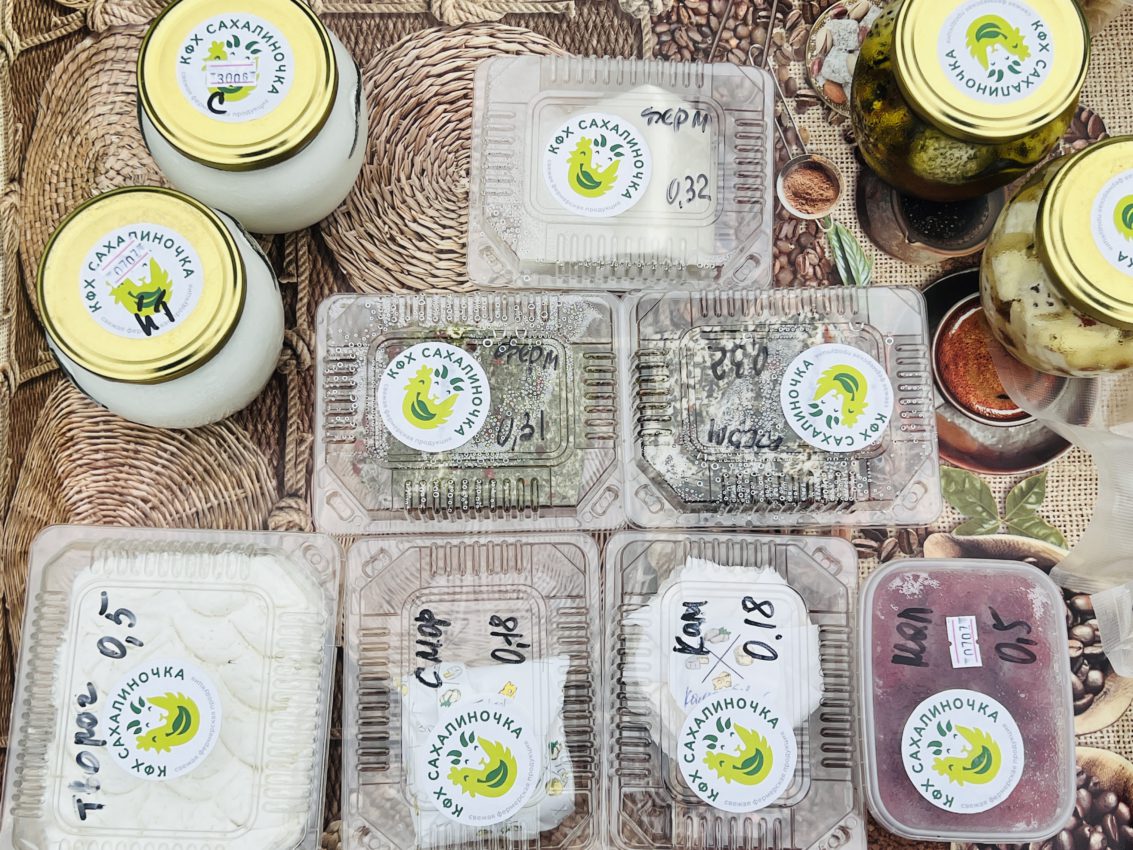 На сегодняшний день в ассортименте КФХ «Сахалиночка» присутствуют изделия из козьего молока, сыры, яйца, маринованное мясо, охлаждённые и замороженные тушки. Особой популярностью среди покупателей пользуются мясные полуфабрикаты, линейка колбас и сосисок для детей. В составе этих продуктов нет ничего, кроме специй и мяса.