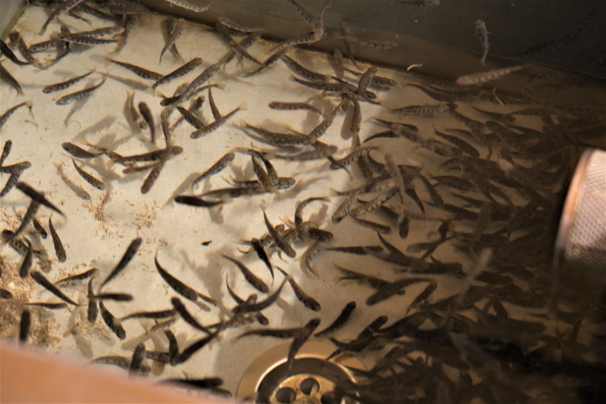 Сегодня в аквариумах плескаются больше двух тысяч хвостов красной рыбы. Подрастают еще около семи тысяч мальков.